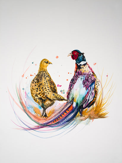 Every stroke of the original watercolor painting of these pheasants has been captured and reproduced on this fine art giclée print.